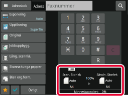 som "Scan. Storlek" och överföringsstorleken visas som "Sändn. Storlek"
