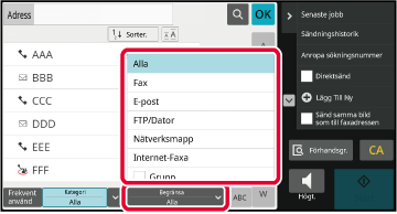 Tryck på [Frekvent använd] och välj en adress på skärmen