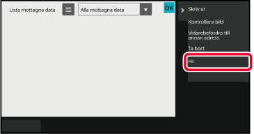 Tryck på knappen för de mottagna data som du vill spara och sedan på [Fil] i åtgärdspanelen.