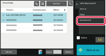 Tryck på [Kombinera fil] på åtgärdspanelen.