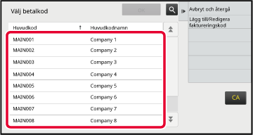 Mer information om hur du ändrar en kod finns i stegen 4 till 7 i "REGISTRERA EN NY FAKTURERINGSKOD".Tryck på [Avsluta registr.] på åtgärdspanelen.