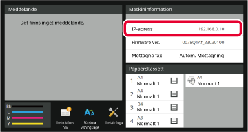 Gå till inställningsläget i maskinen och skriv ut maskinens IP-adress. Ange adressen i webbläsarens adressfält.