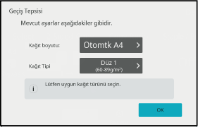Her geöiş tepsisi tuşunda yüklenen kağıdın boyutu ve türü görüntülenir.
