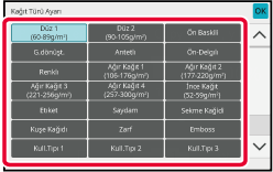 [Kağıt Türü] tuşuna dokunun, yerleştirilmiş kağıt türü tuşuna dokunun ve ardından [OK] tuşuna dokunun.