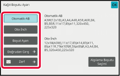 [Boyut] sekmesine dokunun ve yüklenen kağıt boyutuna uyan tuşa dokunun.