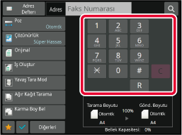 Hedef numarayı doğrudan girmek için rakam tuşlarına dokunun veya adres defterinde numarayı arayarak bulun.