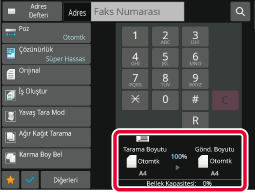 boyutu "Tarama Boyutu" olarak, iletilecek boyut ise "Gönd. Boyutu" olarak