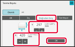 [Doğrudan Gırış] tuşuna dokunun ve tarama boyutunu girin.