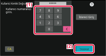 Sayısal tuşları kullanarak (5 ila 8 haneli) kullanıcı