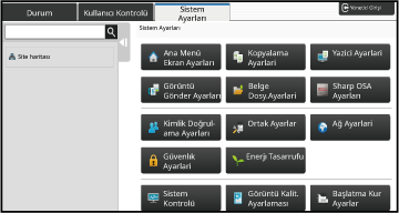 [Sistem Ayarları] sekmesine dokunduğunuzda ekranda öğe tuşları