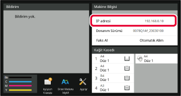 Makinenin ayar modundan, makinenin IP adresini yazdırın ve
