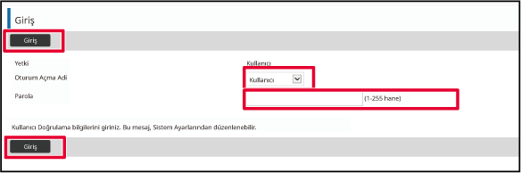 Varsayılan değer durumunda, kullanıcı parolası girilmesi gerekir.