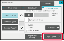 The Insertion Type B to Type H settings are the same as the Insertion Type A settings.Enter the number of the page you want to insert a sheet into using numeric keys, and then tap the [Enter] key.