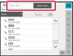 with "XX".Enter a keyword and tap the [Search Start] key.