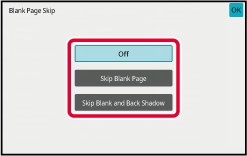 Tap the [Skip Blank Page] or [Skip Blank and Back Shadow] key.