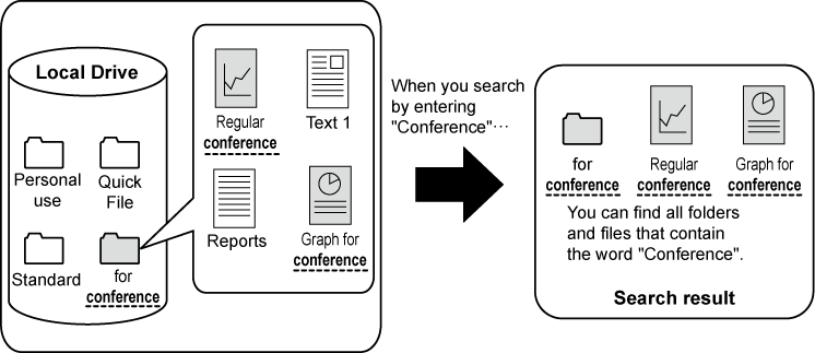 Searching is possible even when you only know part of the file name or folder name. As required, a folder can also be specified as a search range.