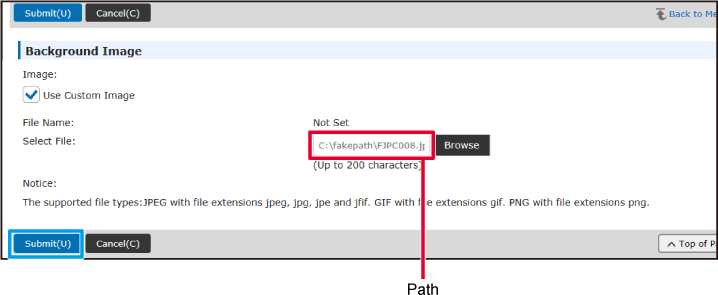 Select "Use Custom Image" and click the [Browse] button to select the desired image.