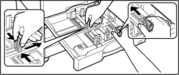 Adjust guide plates A and B to match the longitudinal and transversal dimensions of the paper to be loaded.