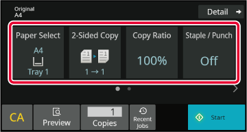 SELECTING THE ORIENTATION AND SIZE OF THE ORIGINALSELECTING THE PAPER TRAY FOR COPYINGAUTOMATIC 2-SIDED COPYINGENLARGING/REDUCING THE LENGTH AND WIDTH SEPARATELYCHANGING THE EXPOSURE AND ORIGINAL IMAGE TYPEOUTPUT