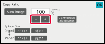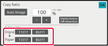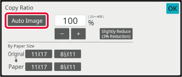 The reduction or enlargement ratio is automatically selected based on the original size and the selected paper size.