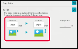 COPY MODESpecify the original size (paper size of the loaded original) and the copy size (paper size of the copy output).