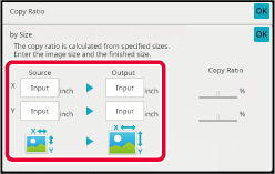 Specifying the desired zoom ratioSpecify the X and Y dimensions of the image size and those of the output size.