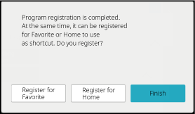 Select whether or not the program will be added to the home screen or the favorites.
