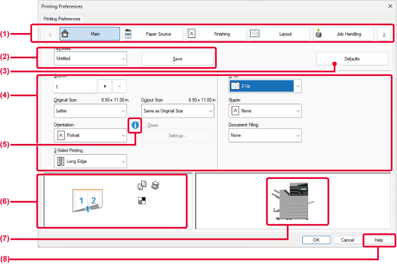 In Windows 10, select the printer driver for the machine and click the [Preferences] button.