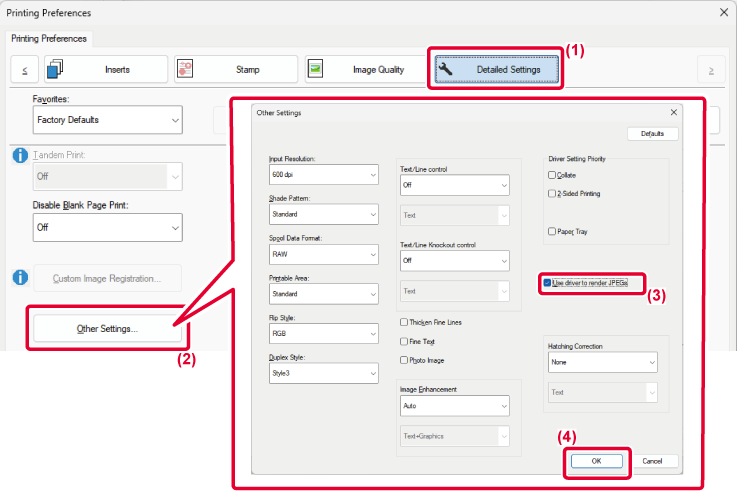 allows you to select whether the images are rendered in the printer