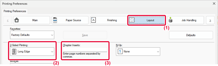 Select [Tab Paper] in [Inserts Option] on the [Inserts] tab