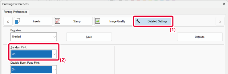 - Select [On] in "Tandem Print".
