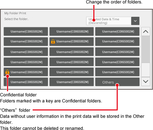 (Administrator)"→[System Settings]→ [Printer Settings]→[My Folder