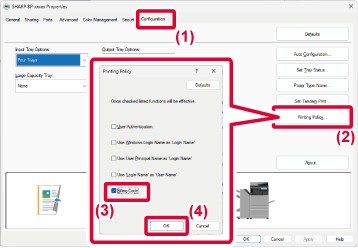 In Windows 10, click the printer driver name of the machine, click [Manage] and click [Printing Preferences].Specify a billing code