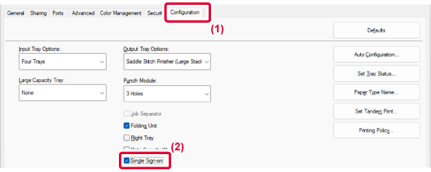 Active Directory, configure the settings below in the printer driver.