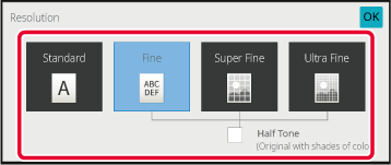 When your original is a photograph or has gradations of color (such as a color original), and you wish to produce a clearer image than [Fine], [Super Fine], or [Ultra Fine] used alone, set the [Half Tone] checkbox to