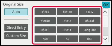 On the base screen, check that the specified size is displayed on the [Original] key.In Normal
