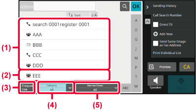 Tap the [Frequent Use] key and select an address in the
