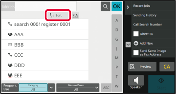 Tapping the [Sort] key displays a list in ascending