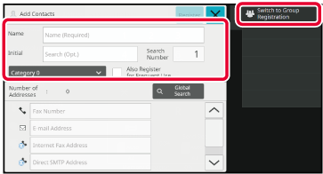 Enter the basic information, and tap [Switch to Group Registration] on the action panel.