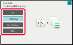 When scanning finishes, place the next original and tap the [Start] key.The opened pages of a saddle-stitch