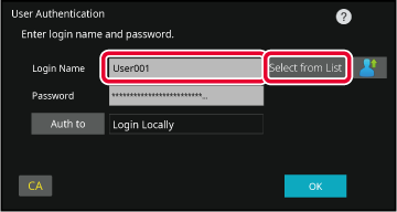Selecting from a list Tap the [Select from List] key and select a user name from the