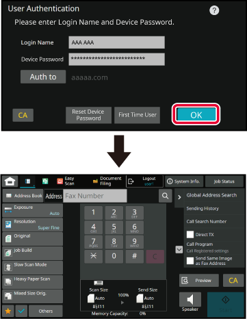 Tap the [Auth to] key and set the authentication destination.
