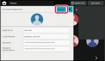 Enter user information, and tap the [Register] key.