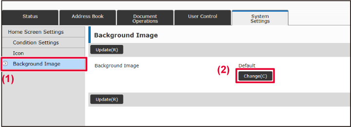 Connect to the web page as explained in " DISPLAYING THE SETTING MODE (WEB VERSION)".