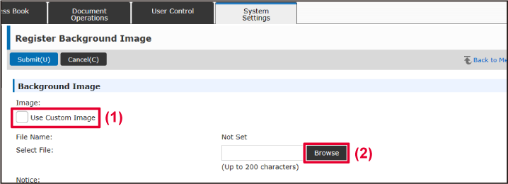 Select "Use Custom Image" and click the [Browse] button to select the desired image.