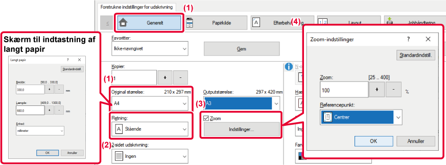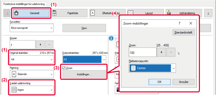 - Klik på fanen [Generelt], og vælg originalstørrelsen