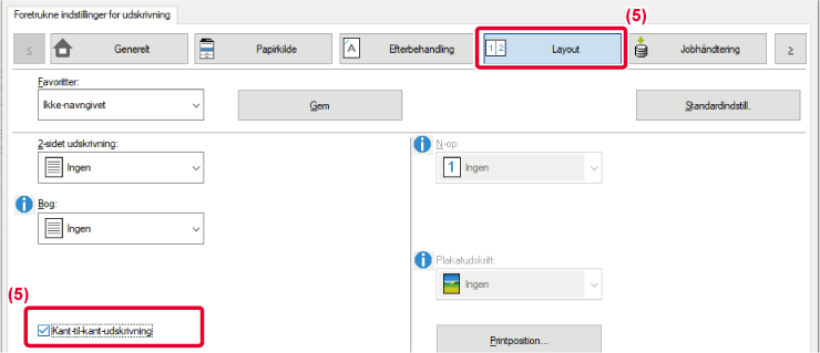 - Klik på fanen [Layout], og marker afkrydsningsfeltet [Kant-til-kant-udskrivning].