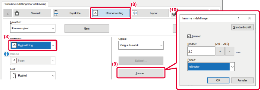 - Klik på fanen [Efterbehandling], og vælg [Ryghæftning] i