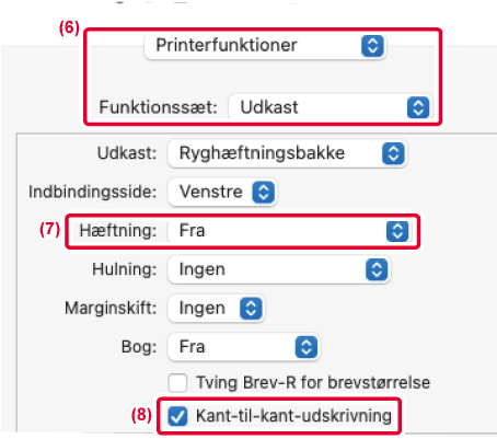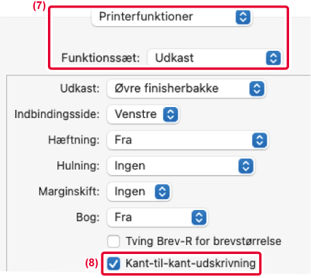 I macOS 13, er [Beskæring] placeret under menuen "Printer