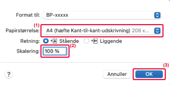 Vælg "A4 (Edge-to-Edge Printing)" eller "A5 (Edge-to-Edge